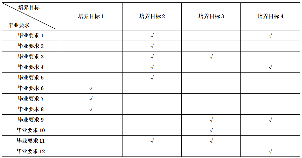 毕业要求支撑培养目标矩阵表