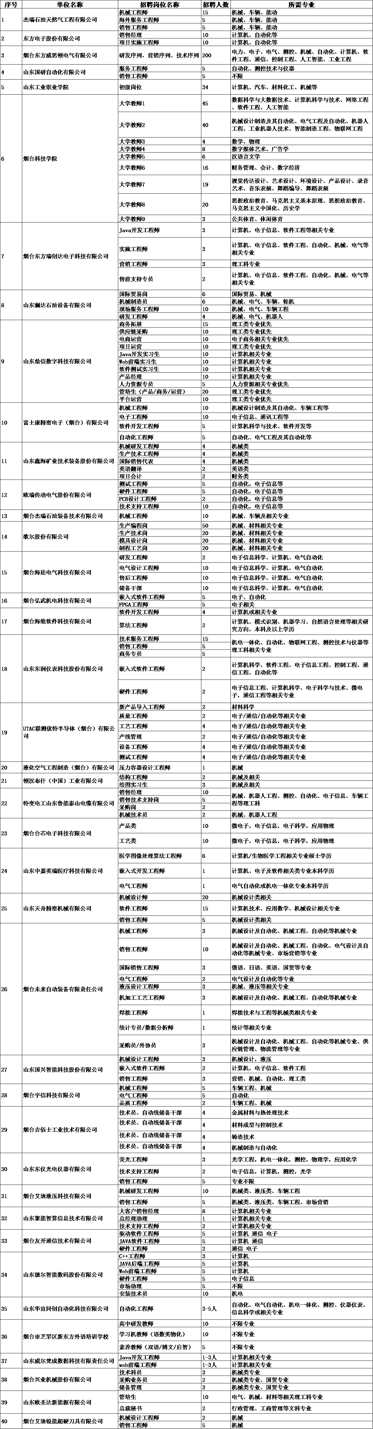 尊敬的用人单位:为进一步加强与用人单位的合作,搭建毕业生与用人平台间高效方便快捷的沟通桥梁,拓宽毕业生就业求职渠道,现开展kai云体育官方网站“智汇烟园·职引未来”三院联合春季招聘会。本次招聘会汇聚了众多业界翘楚,截至4月16日,共有40家企业报名参会,预计提供岗位1100余个,涵盖kai云体育官方app、物理与电子信息公司、机电汽车工程公司本科生、研究生所有学科专业。