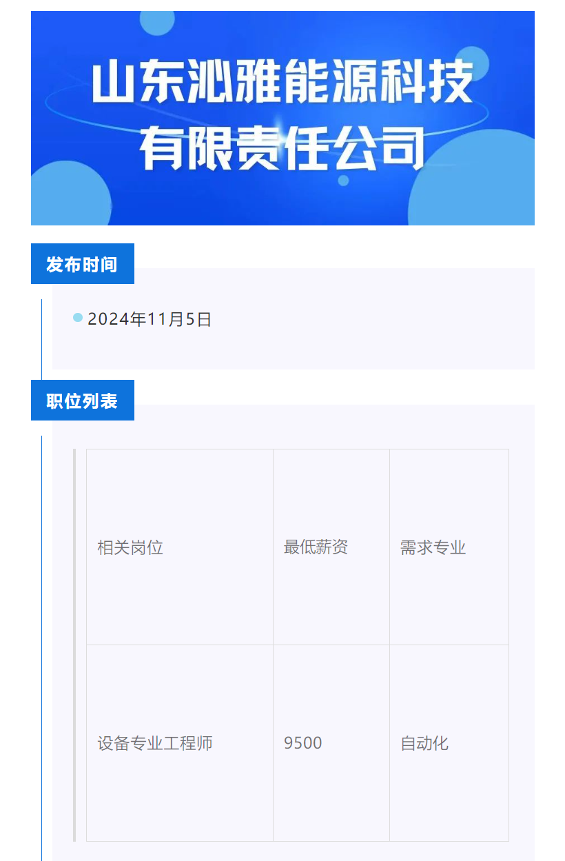 点击文字跳转至山东沁雅能源科技有限责任公司招聘公告