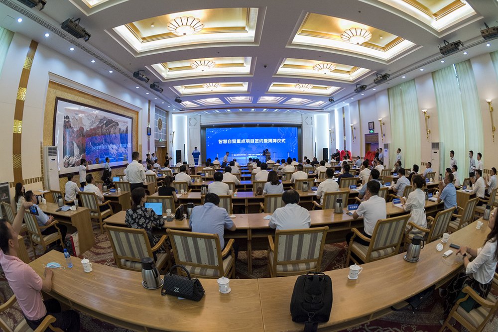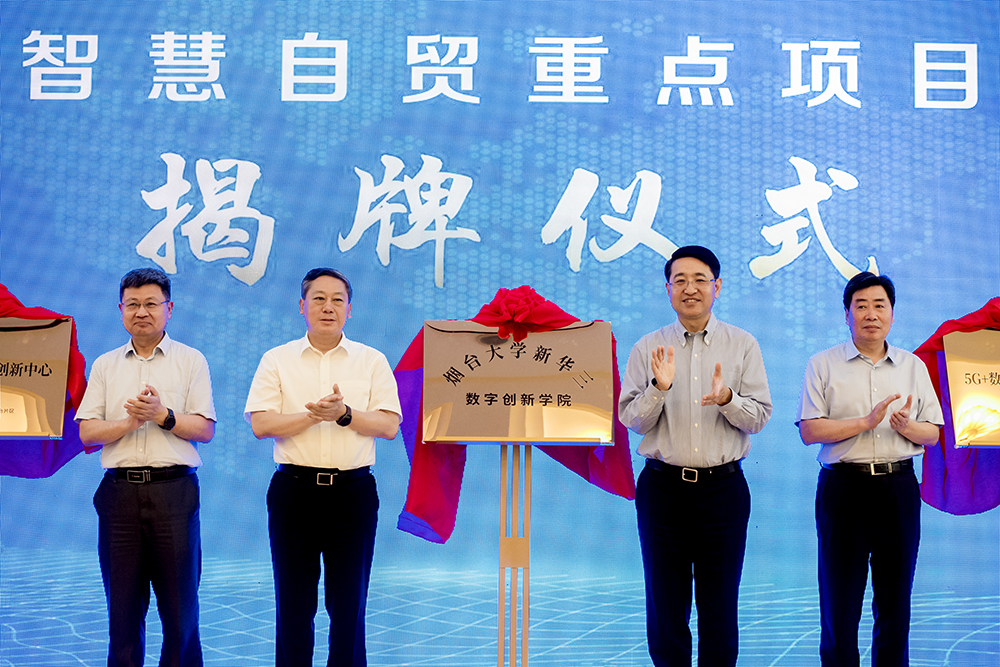 致辞结束后,张术平、于松柏、于英涛、张力、张伟、郭善利、张代令、牟树青、刘健民等共同为kai云体育官方网站新华三数字创新公司、中节能数字经济产业园、数字孪生联合创新中心、明石创新5G+微纳制造产业技术研究基地、5G+工业互联网创新中心等五个智慧自贸重点项目揭牌。牟树青与清华紫光集团、上海理想信息产业有限公司等4家企业签署了智慧自贸战略合作协议,刘建民与市5大运营商签署了5G战略合作协议,市5大运营商分别与自贸区15家企业签署了“新基建”合作协议。