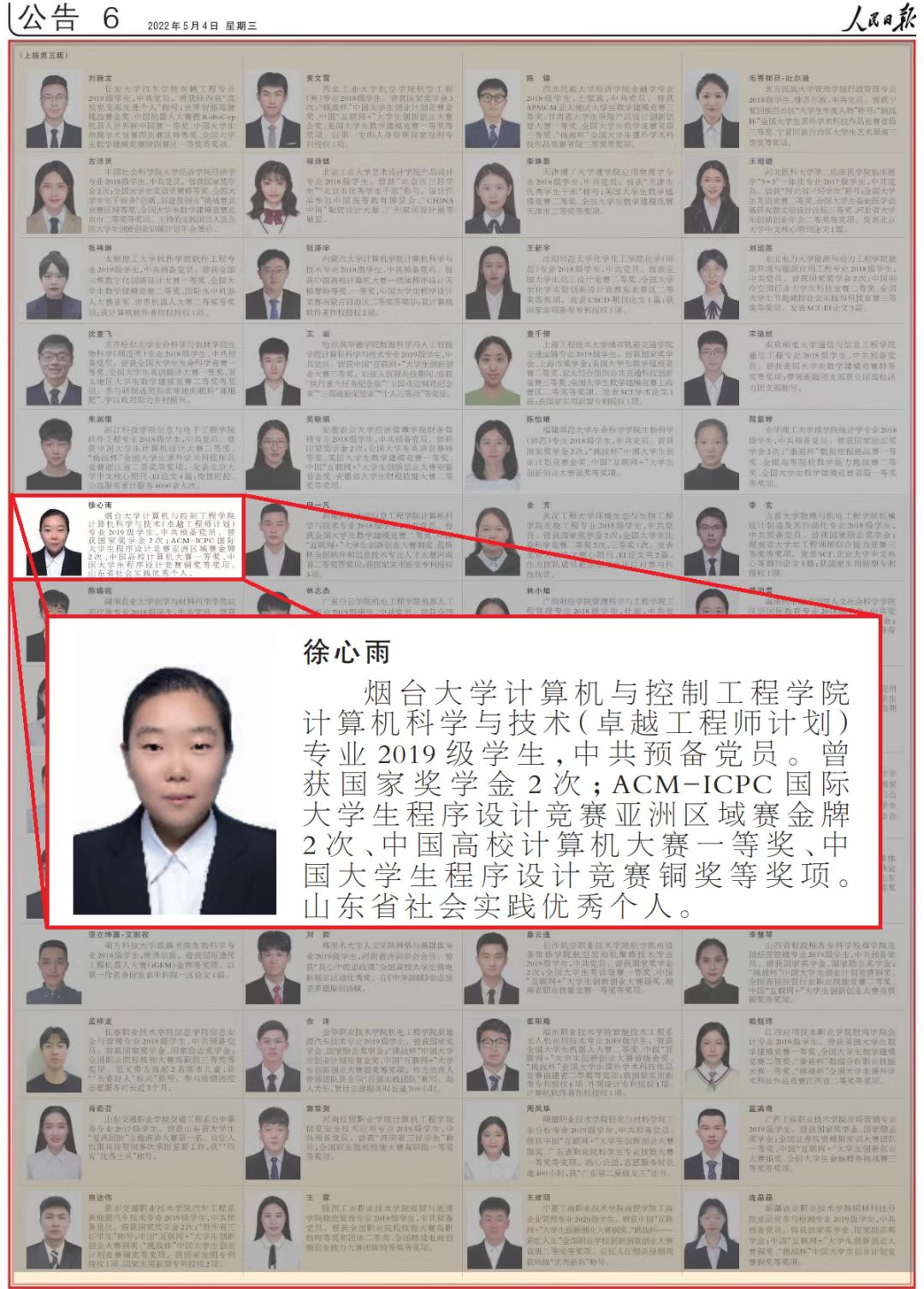 优秀学子徐心雨获评2021年度“中国老员工自强之星”并入选《人民日报》刊登的国家奖学金获奖员工代表名录