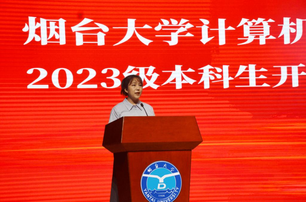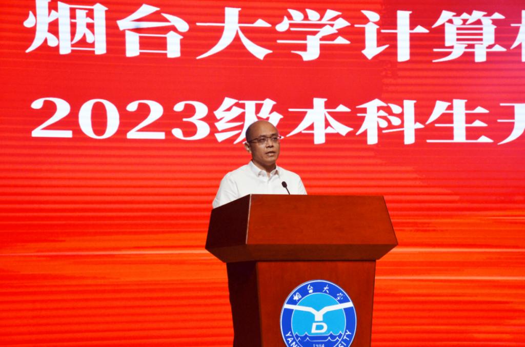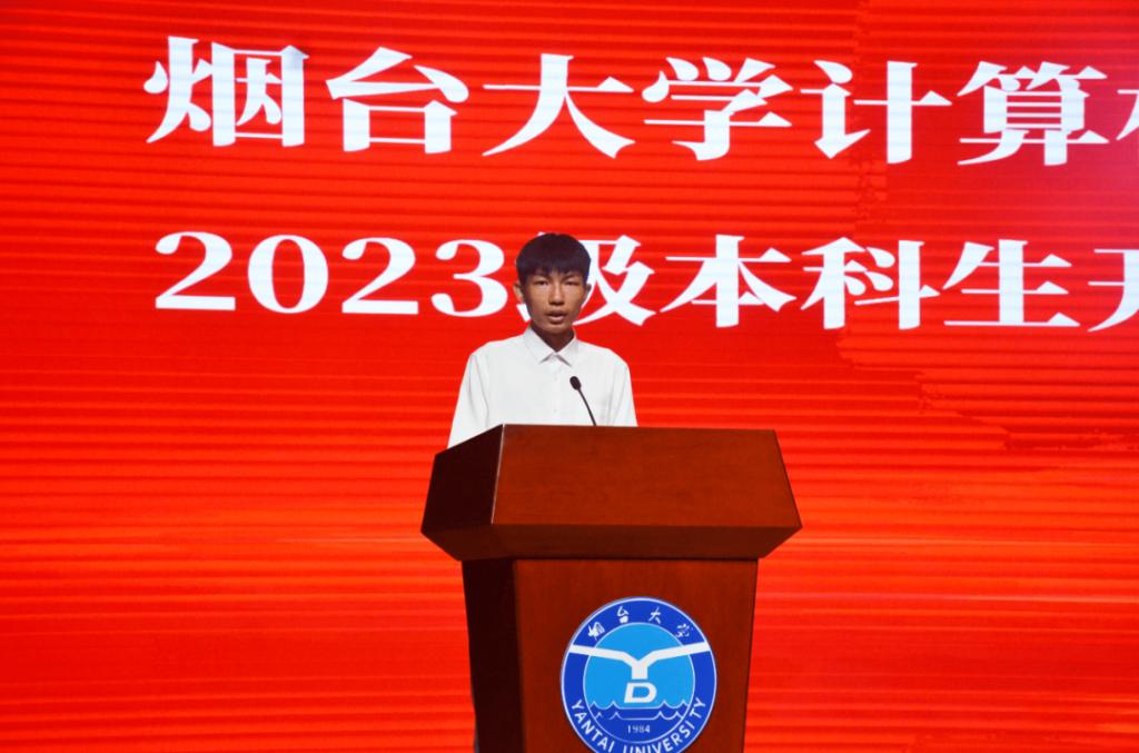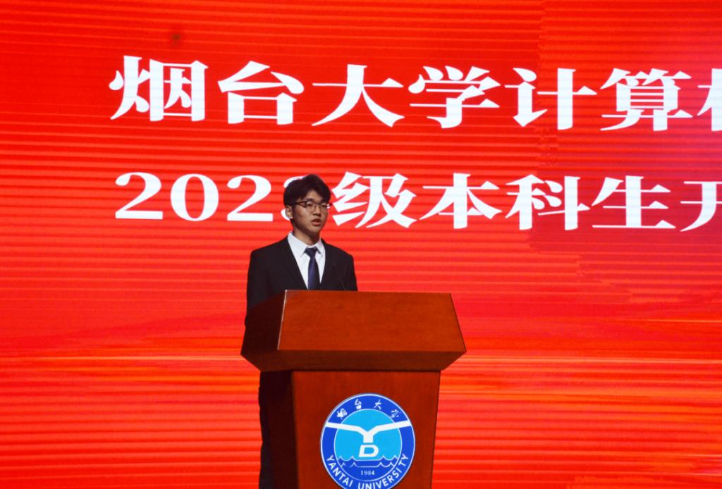 新生班级导师代表、计233-1班导师马朝青鼓励新生在大学新的人生阶段笃实奋进,在时代洪流中坚定个人信念,抓住机遇,成为有责任、敢担当的烟大青年。