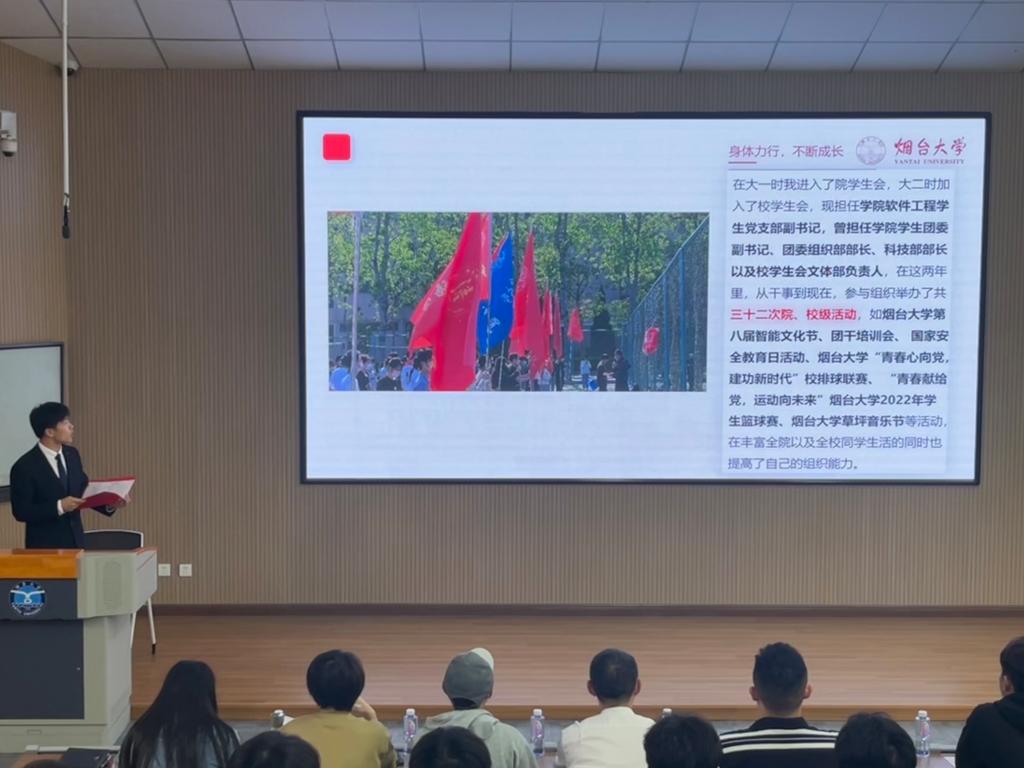 答辩开始前,辅导员徐婧怡介绍了2022-2023学年本科生国家奖学金评审原则和流程。答辩过程中,九位国家奖学金候选人分别从思想品格、学习成绩、综合测评成绩、员工工作、科技创新和社会实践等多个方面进行了个人风采展示,分享了各自在学习、生活、竞赛等方面的成长和感悟。答辩结束后,评审小组成员根据答辩同学各方面的综合情况进行评定,会议最终确定国家奖学金获奖员工建议名单为:胡海阔、齐泉智、王菁。