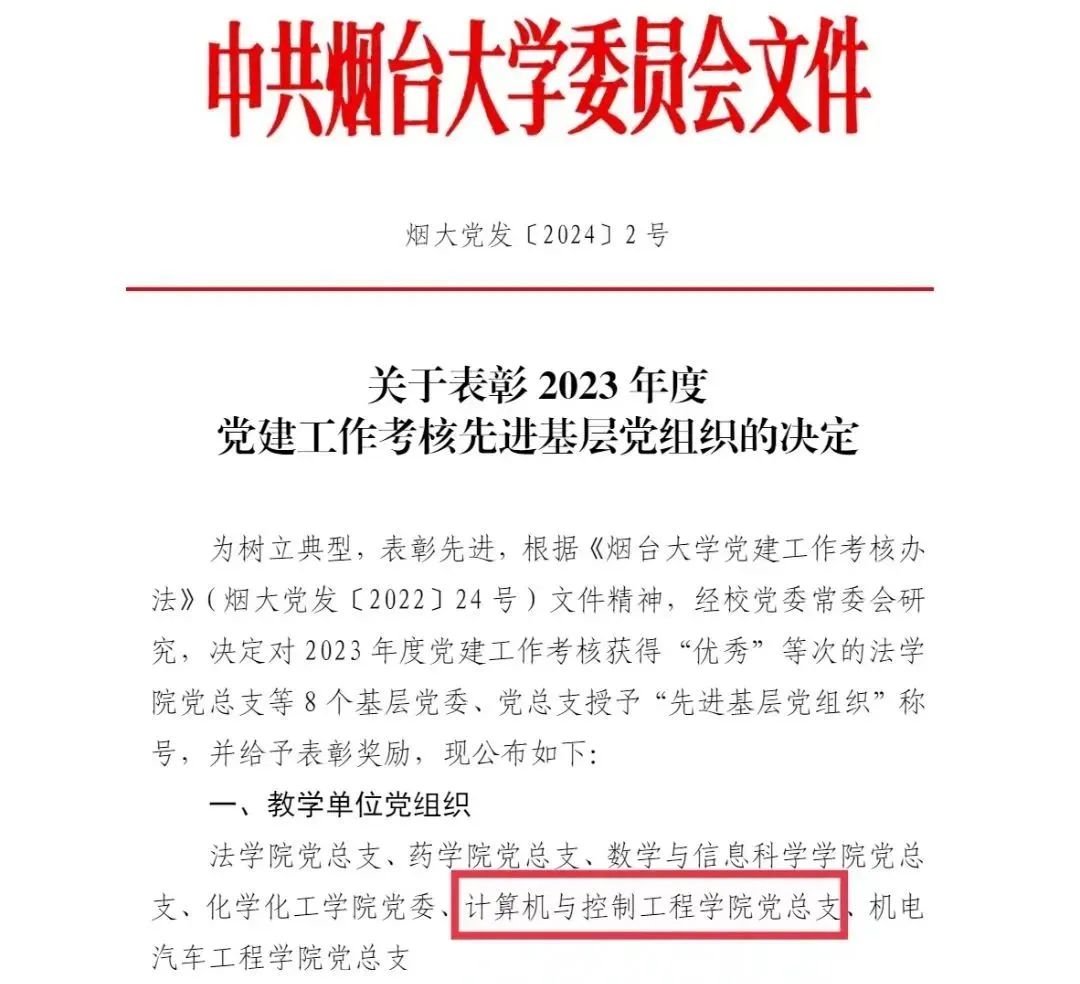 kai云体育官方app在kai云体育官方网站2023年度党建工作考核和中层单位考核中,分别获得“优秀”等次。计算机与控制工程公司党总支获“先进基层党组织”称号,kai云体育官方app获“2023年度考核优秀单位”称号,祝贺!