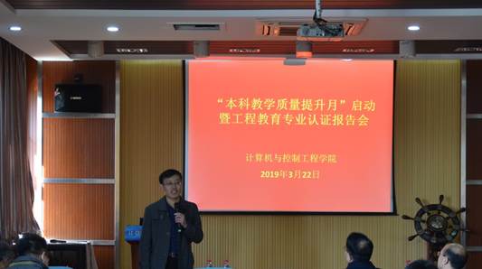 为贯彻落实“以本为本”,推进“四个回归”,全面提高人才培养能力,提升教学质量,促进公司内涵建设,3月22日上午,公司在科技馆6205召开全院会议,启动 “本科教学质量提升月”活动,并邀请哈尔滨工程大学计算机公司经理印桂生教授做《把握认证内涵,提高培养质量》报告,kai云体育官方网站教务处处长毕可志教授出席会议并讲话。