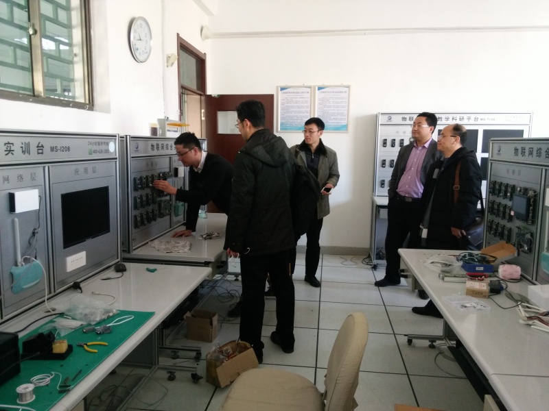 在计算机科学技术公司,经理潘振宽教授、副经理李建波教授对童向荣经理一行的来访表示热烈欢迎,介绍了计算机科学技术公司的发展历程,在教学、科研、人才培养等方面所取得的成绩,重点介绍了教学管理方面采取的改进措施。童经理对潘经理的热情接待表示感谢,并简单介绍了公司的基本情况;随后双方就专业群建设、课程建设、实验室建设、团队建设等方面的相关工作进行了深入交流。会谈后,参观了公司实验室建设情况。