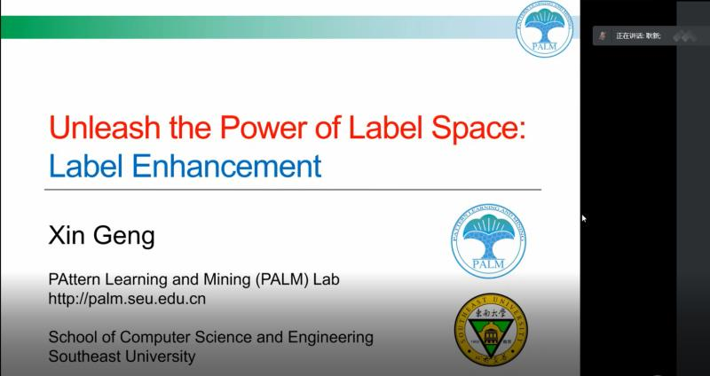 东南大学计算机科学与工程公司、软件公司经理,人工智能公司执行经理,国际工程与技术学会(IETI)杰出会士,国家基金委优青,江苏省杰青耿新教授报告题目为“标记增强:释放标记空间的威力”,他指出目前多数的机器学习范式中,示例的标记均采用0/1标记,即0表示不相关,1表示相关。在这种0/1标记形成的标记空间中,所有样本只能分布在单位超立方体的顶点上,这极大地限制了标记空间中可进行的分析。通过学习训练集中示例之间的相关性、以及标记之间的相关性,我们可将原始0/1标记扩展为更丰富的类别监督形式,从而使标记空间中更复杂的分析操作成为可能,这一过程称为“标记增强”。通过标记增强,标记空间的威力可望被释放出来。