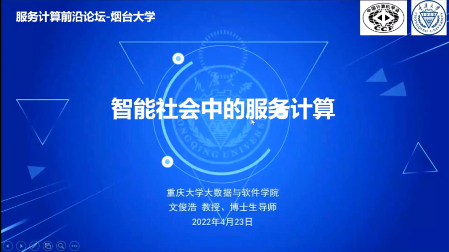 重庆市学术技术带头人、重庆市名师、重庆大学文俊浩教授作了题为“智能社会中的服务计算”的特邀报告。文俊浩教授分析新产业蓬勃发展的背景下智能社会迎来的新机遇,指出跨界融合是智能社会的新模式。报告结合科研团队承担的国家重点研发计划、国家自然科学基金等研究课题,阐述智能社会的社会计算、智能服务计算跨平台数据融合的研究和应用中的热点难点。分享团队获得科技进步二等奖的智能检测监测云服务平台、重庆市科技进步一等奖的非标低频众创服务共需智能撮合方法、区域汽车产业生态圈网络协同制造共享云服务平台等智能社会中服务计算的应用方案。最后展望了未来智能社会中服务计算的发展方向。