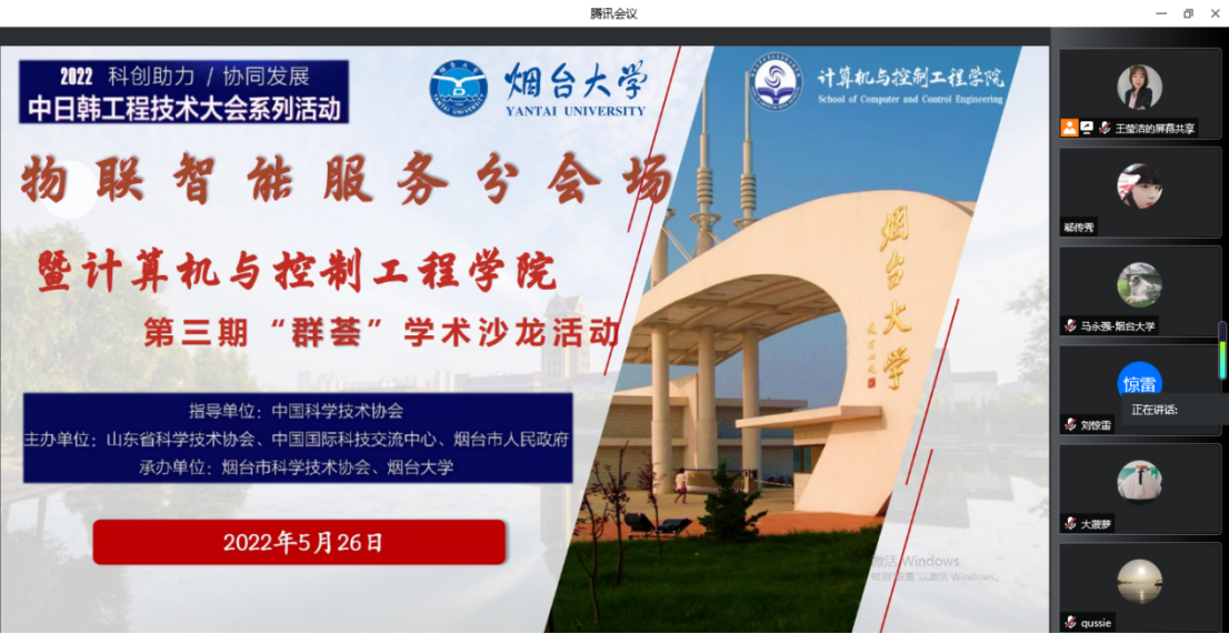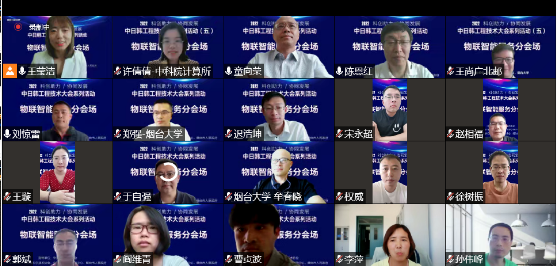 5月26日,2022年中日韩工程技术大会“物联智能服务分会暨kai云体育官方app第三期‘群荟’学术沙龙活动”通过线上形式成功举办。本次会议由中国科学技术协会指导,中国国际科技交流中心、山东省科学技术协会、烟台市人民政府主办,烟台市科学技术协会、kai云体育官方网站科学技术协会承办。会议聚焦物联智能服务领域邀请国内著名专家进行了最新研究成果、创新思想和科学方法的分享,来自全国各地的1000多位专家学者参会。