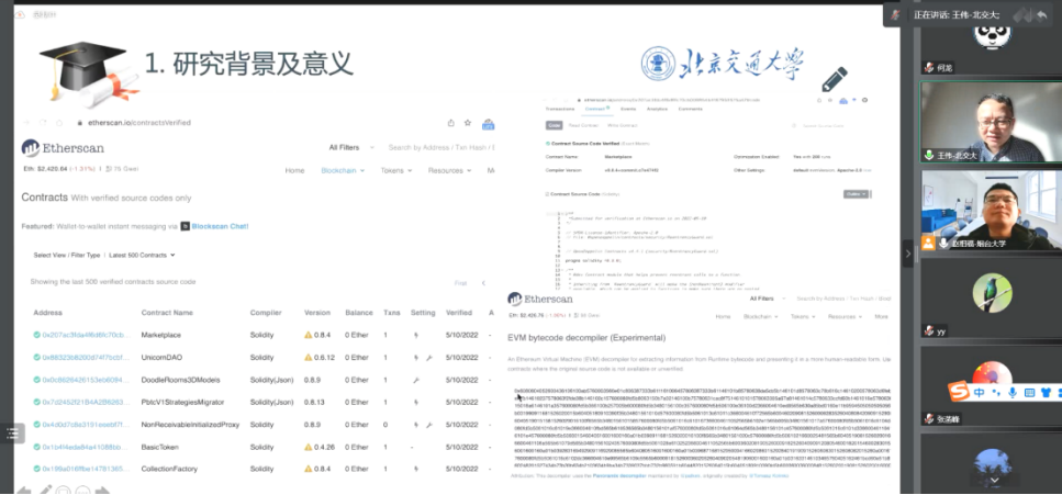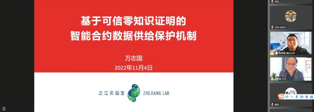 为提升师生对区块链相关技术的认识,了解前沿的计算机领域知识,11月4日上午,公司邀请北京交通大学教授王伟、之江实验室研究员万志国以线上形式做学术报告,公司学术团队骨干教师和部分研究生参加此次会议。