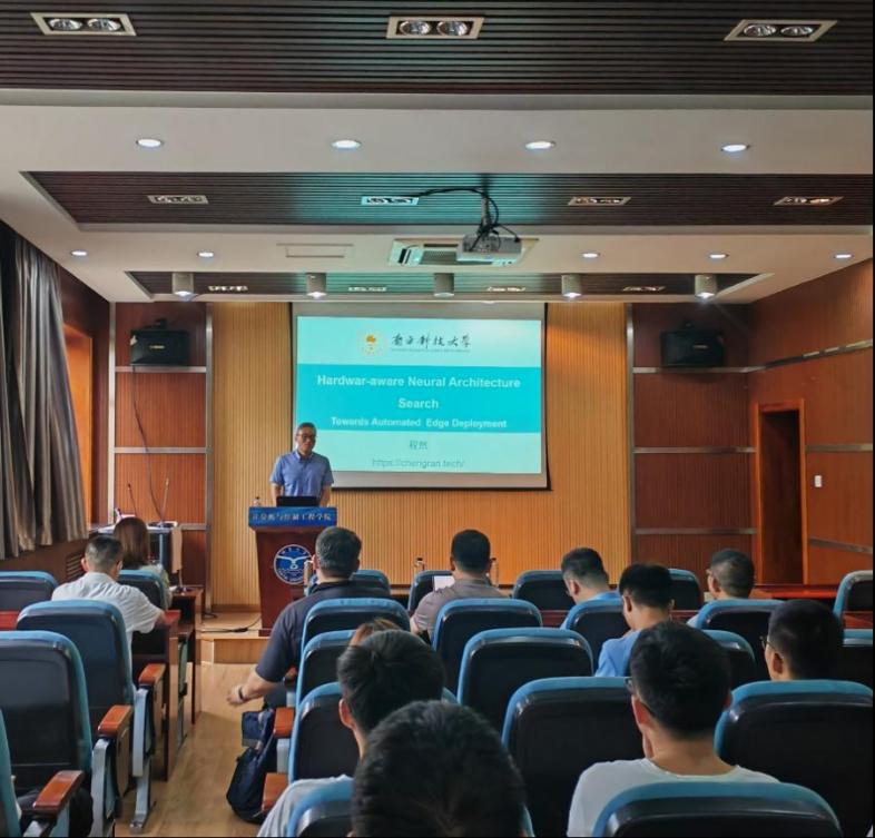 近年来,随着深度学习的广泛发展,将深度学习的模型部署到边缘环境的问题成为了当前备受关注的焦点。程然在报告中结合当前的研究背景和问题定义,深入探讨了将一些硬件指标纳入深度学习模型考虑范畴的方法,并展示了如何利用演化计算实现高效的自动化模型设计。同时,他指出部署的核心目标就是将问题建模成多目标优化问题和构建平台。最后,以自动驾驶场景下的实时语义分割任务为应用案例,展示了演化计算在边缘计算设备上的自动化部署性能。
