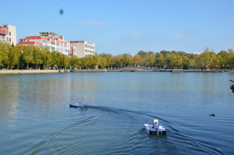 本次活动分为船模竞速赛和船模创意设计两个环节。童向荣致辞完毕后,比赛正式拉开帷幕。首先进行的是船模竞速赛,比赛分为“直道”和“弯道”两个赛场。在“直道”比赛现场,每支队伍都按照赛制规则在起点等待,在裁判发出指令后,参赛船模一触即发,冲出起点,参赛者手拿遥控器,操控着船模在三元湖规定的比赛路线中穿梭而行。随后是创意组比赛,参赛选手讲解了船模的设计灵感,由在场观众进行评分。紧接着,竞速赛“弯道”比赛开始了,船模在三元湖中灵敏的转弯,绕过障碍物,在场观众纷纷拍手称赞。在经过竞速赛之后,迎来了激动人心的表演赛,裁判发令枪响起,船模纷纷驰骋而出,并驾齐驱,选手们通过娴熟的操作技术,使船模按照独特地滑行轨迹前进,现场观众也因船模的表演变得热血沸腾。本次活动也在热烈的氛围中落下帷幕。