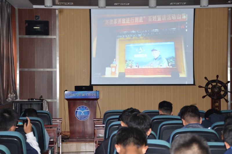 员工干部全部到达现场并落座后,直播开始,同学们聚精会神地观看直播,宣讲会讲述了中国改革开放40年生活的变迁和奋斗的故事,展示了中国人民生活水平发生的翻天覆地的变化——从贫穷到温饱,再到小康社会的跨越式发展。40年峥嵘岁月,烙印着一代又一代人的勇敢探索,记录了中国改革开放过程中的历史性跨越,同学们无不感慨中国在改革开放过程中激发出的无限潜力,纷纷参与其中,发送弹幕以表达自己对中国这种昂扬姿态的赞美与歌颂。直播结束后,孙凯做总结发言,他提到,改革开放是当代中国发展进步、实现中国梦的必经之路,“将改革进行到底”已凝聚起社会力量,成为了中国新时代的最强音。他还讲到,历史的接力棒已传到当代青年手上,青年老员工们应该逢山开路、遇水架桥,让前辈开辟的这条道路继续向前延伸,让中华民族以更加昂扬的姿态屹立于世界民族之林。孙凯的发言引起了同学们的共识,掌声雷动。至此,本次活动圆满结束。