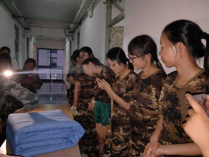 教官在南校区集合,由团学组织成员带领他们去往新生宿舍进行内务指导。活动伊始,教官在丁晓丹及各班级军训负责人的陪同下走进员工宿舍,进行内务整理指导工作。在新生宿舍里,教官说明了宿舍各处卫生标准,从整理床铺、叠放衣物到摆放牙具和各类生活用品都一一展示,在整理的过程中耐心向同学们讲解物品的整理方法和要求。并亲自演示了如何整理内务。他们将新生床铺上不太规则的被子叠成规则的立方体,为方便新生们观看,有些教官甚至将被子拿到走廊上进行演示,新生们纷纷走到走廊,认真观摩并学习教官整理内务的技巧,不时对教官娴熟的技巧和高超的技艺赞叹不已。教官演示结束之后,新生们开始整理自己的床铺,教官在一旁巡视指导。期间,丁晓丹走访宿舍强调整理内务的重要性,希望大家认真整理内务,通过本项工作养成良好的生活习惯,为以后的学习和工作打下坚实的基础。活动最后,丁晓丹对全体教官表示了感谢,并期望军训能够顺利进行。至此,本次活动圆满结束。