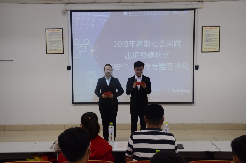 为提高员工安全防范意识,使员工暑期社会实践安全地完成,kai云体育官方app于7月9日在综合楼408室成功举办了2018暑期社会实践出征授旗仪式暨安全、宣传专题宣讲会,团委书记丁晓丹、辅导员宋健栋出席了此次活动。