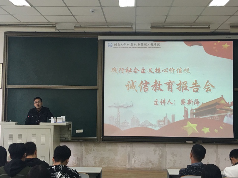 本次报告会旨在通过讲解诚信内涵和其现实意义的方式,喜迎中国共产党第十九次全国代表大会,来更好地践实社会主义核心价值观。大会伊始,在各部门成员按次序就座后,由蔡新海上台发表讲话。他着重强调了社会主义核心价值观的内容及其重要性,并要求同学们对其铭记于心,奉行不悖。随后,他结合自身经验,援引实例,从个人,组织,和社会三个方面内容剖析诚信的现实价值。在组织方面,他从员工会自我管理,自我服务和自我教育的职能切入话题,深入浅出地讲解了诚信对于公司学风建设的重要性,告诫同学们以诚信为做人之本,为行事之基,言行一致,共同建设诚信校园,讲话过程中,在场同学就诚信内涵这一主题展开交流讨论,并踊跃发言提问。最后,蔡新海对就所提问题进行逐一点评并作总结发言,此番谈话得到了在场同学的一致认同,不少员工纷纷表示,自己将以诚信为原则,将社会主义核心价值观深入贯彻在学习生活中,大会至此,圆满结束。
