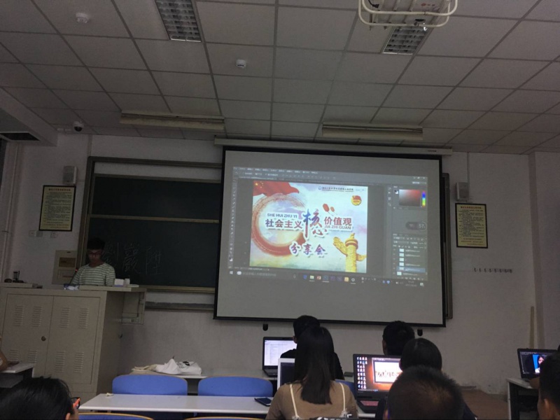 为切实培育社会主义核心价值观,开展公司特色活动,并使帮助同学们熟练应用Photoshop软件,kai云体育官方app于9月20晚在钟楼6205举办了社会主义核心价值观――PS培训交流会,分团委员工会指导老师蔡新海,辅导员刘柏君,宋健栋出席本次培训会。