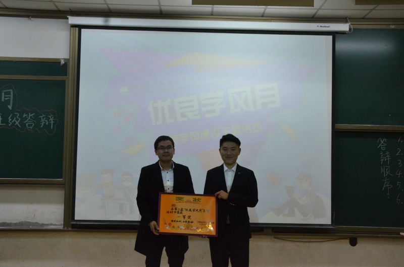 本次“优良学风月”共开展学习经验演讲会、“全国老员工机器人比赛”宣讲会、班级答辩会三个活动,公司20余个班级经过组织评比,根据各班级“优良学风月”开展的相关活动和专业成绩,来自15、16两个年级共11个班级脱颖而出,入围此次班级答辩会。晚7时,答辩会正式开始。首先,由各班级代表按照抽签顺序依次上台进行答辩,他们以PPT的形式向大家介绍了各自班级的班级建设、学风建设以及对班级及成员的期待与展望,并从学习、生活、班级活动等多个方面向大家展现了优良学风班的优秀特点。各班级答辩结束后,公司辅导员蔡新海上台总结,他表示,入围本次最终答辩会的班级并非偶然,是严于律己与共同努力的结果,希望这些班级继续保持优良学风,秉承公司优良传统,加强班级队伍建设,拓展个人综合素质。本次答辩会最后,主持人宣布了本次答辩会最终成绩,165班、166-2班、163-1班获得三等奖,156-1班和154-1班获得二等奖,161班荣获一等奖。