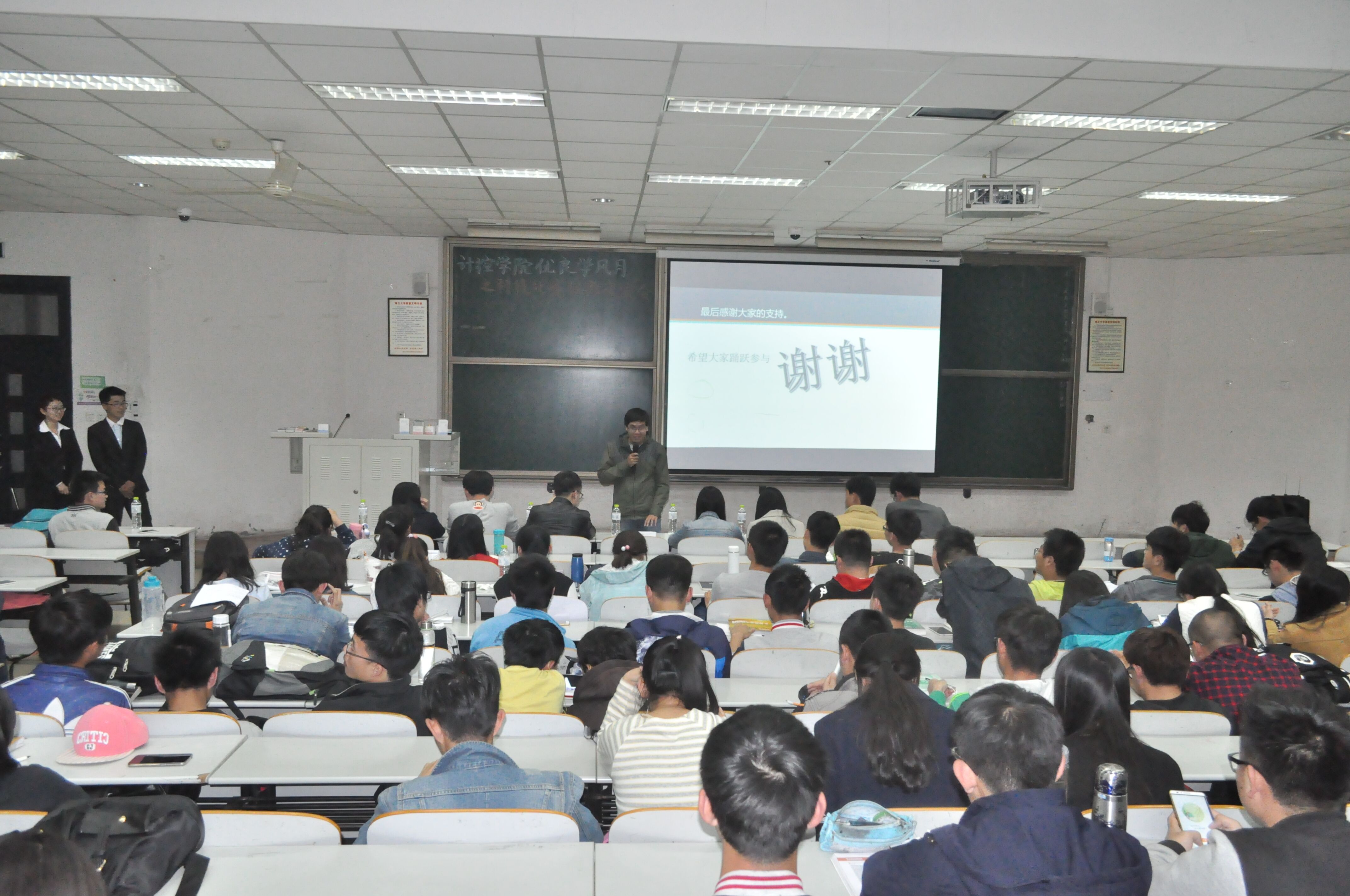 本次经验交流会邀请到了在2015年各类科技竞赛中获奖的队伍和个人,吸引了众多同学前来参加,会场座无虚席。在同学们的热切期待中,会议于七点正式开始。首先,由自动化协会的李文通向同学们讲解了他参加全国老员工“西门子杯”工业自动化挑战赛的心得体会;紧接着,张宇介绍了有关ACM程序设计大赛的流程以及规则,重点介绍了他们团队合作的事迹,强调了团队合作的重要性;随后,刘营聪分享了飞思卡尔杯全国老员工智能车竞赛的过程与收获,并向同学们介绍了智能车、单片机等方面的内容;刘庆峰向大家介绍了全国老员工数学建模大赛的相关流程和需要学习的内容;最后,周童晖介绍了蓝桥杯全国软件专业人才设计与创业大赛的基本情况以及他的比赛经历和宝贵经验。至此,大会在同学们的热烈掌声中圆满结束。