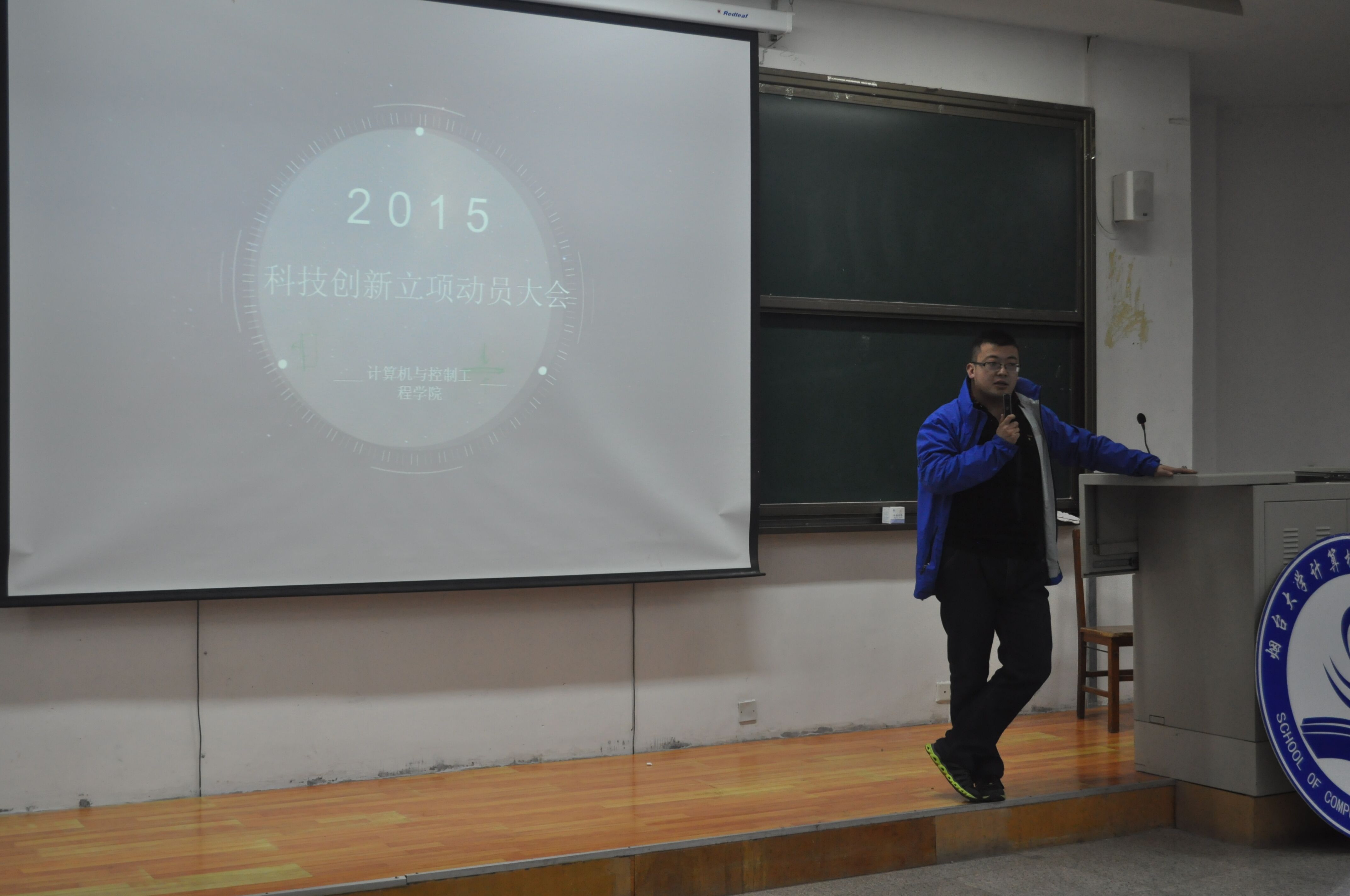 主持人简短开场白后,科技创新动员大会正式开始。伊始,科技部副部长管瑞琳对本次动员大会进行了说明,她介绍了科技立项的概述、好处、步骤及问题与疑问,并说明了科技立项的现状,期盼有参与科技立项意愿的同学能积极申请立项。随后,李泽琛、赵忠臣、姜永平、张士卫作为参与科技立项的代表依次向同学们介绍了自己立项的课题、如何进行自己的科技立项、在参与科技立项过程中所遇到的问题及收获的经验,并且耐心地回答了现场同学们的提问。最后,庞磊老师对本次动员大会进行了总结,并对同学们积极参与科技立项寄予厚望。至此,大会在同学们的热烈掌声中圆满结束。