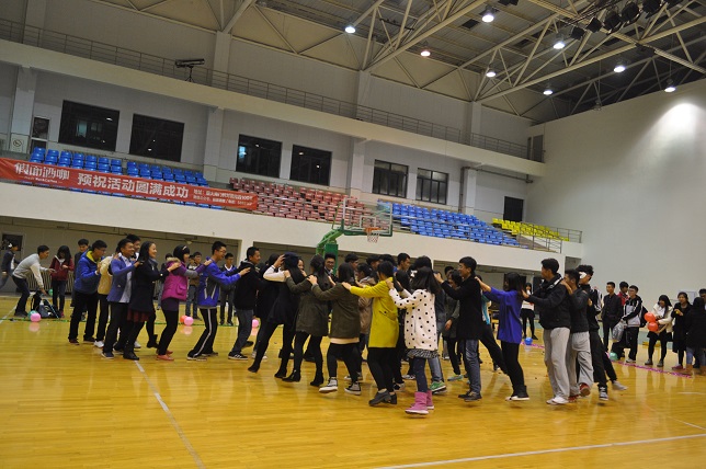 晚会伊始,伴随着旋律轻快的暖场音乐,主持人的开场白将本场晚会推向一个小高潮。在轻松愉悦的氛围下,啦啦操队的表演点燃了现场每一位同学的热情。紧接着,便是备受期待的“交谊舞自由跳”,男生都展现出自己的绅士风度,女生也展现出自己的柔情之美。在舞池中央,他们翩翩起舞,舞台之下,同学们的掌声与欢呼声响彻全场。而后,来自法公司的朱昱霜和来自kai云体育官方app的郗小艺分别为大家带来了歌曲表演,歌声感染了现场每一位同学,经久不息的掌声是最好的见证。在歌声的回味之中,大家迎来了本场第一个游戏——“一块钱五毛钱”,同学们相互配合,欢笑之中他们拥有了新的朋友、新的伙伴。伴随着音乐声的响起,舞者再次回归舞池,跳起优美的交谊舞步。当大家意犹未尽之时,本场第二个游戏——“最佳搭档”悄然而至,在游戏中,他们收获了欢乐,也收获了友谊。晚会最后,全场同学跳起欢快的“兔子舞”,在主持人的宣布下,本次晚会圆满结束。