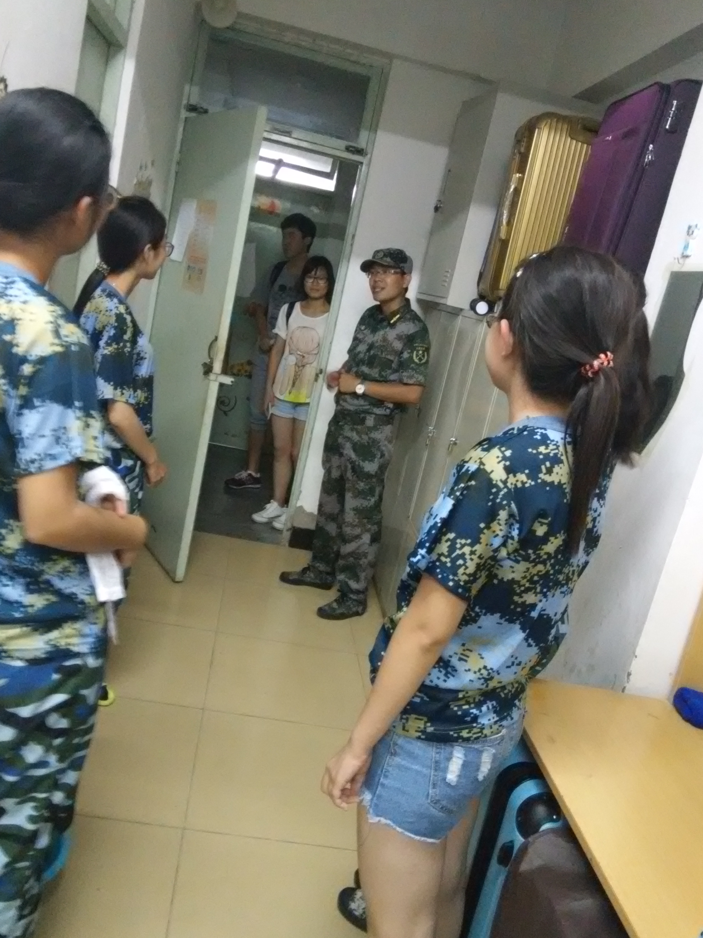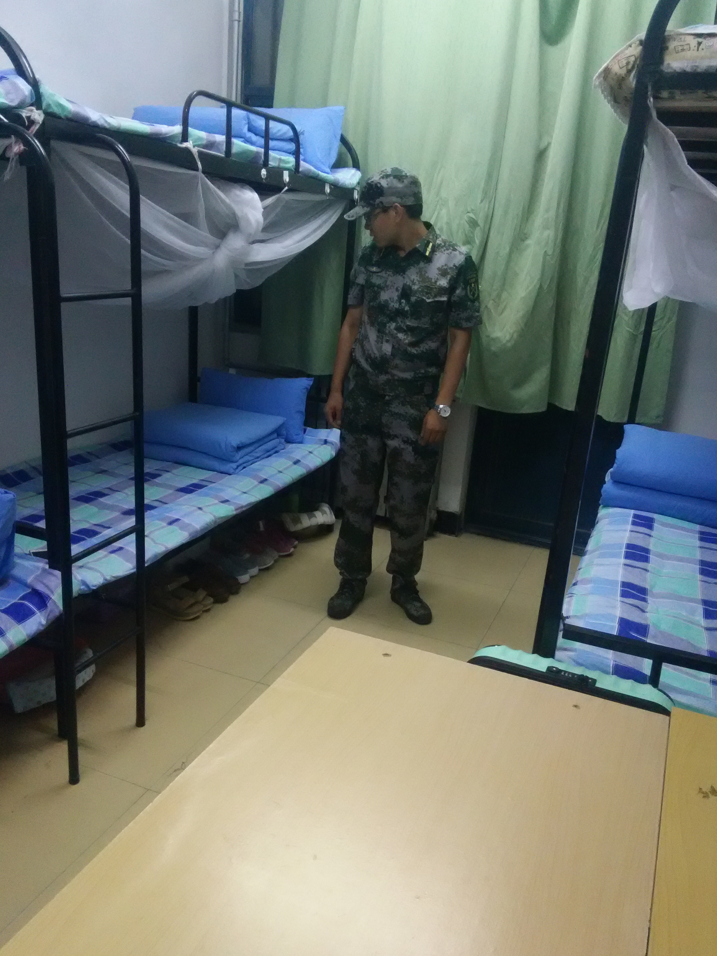 蔡老师安排一男一女两位同学对一间宿舍进行检查和指导,多间宿舍同时进行。蔡老师在宿舍间来回巡查,亲自示范如何整理书柜等具体内务,并让进行指导的同学示范如何摆放生活用品。蔡老师尤其重视宿舍用电安全,叮嘱15级同学离开宿舍要拉电闸和关闭插排电源。对新生宿舍卫生要求主要是物品摆放整洁有序,阳台不能堆放易燃杂物,卫生间不能有异味等,进行指导的同学详细说明具体要求,并对新生宿舍的具体问题提出建议和解决方案,再此过程中蔡老师补充应该先对宿舍进行一次彻底打扫,然后短时间内保持整洁,要把维持宿舍卫生养成习惯,要爱护宿舍。检查过程中蔡老师对宿舍卫生优秀的宿舍提出了口头表扬,带领一些新生对优秀宿舍参观,向模板宿舍看齐,他希望几个典型宿舍可以对其他宿舍起到引领的作用。